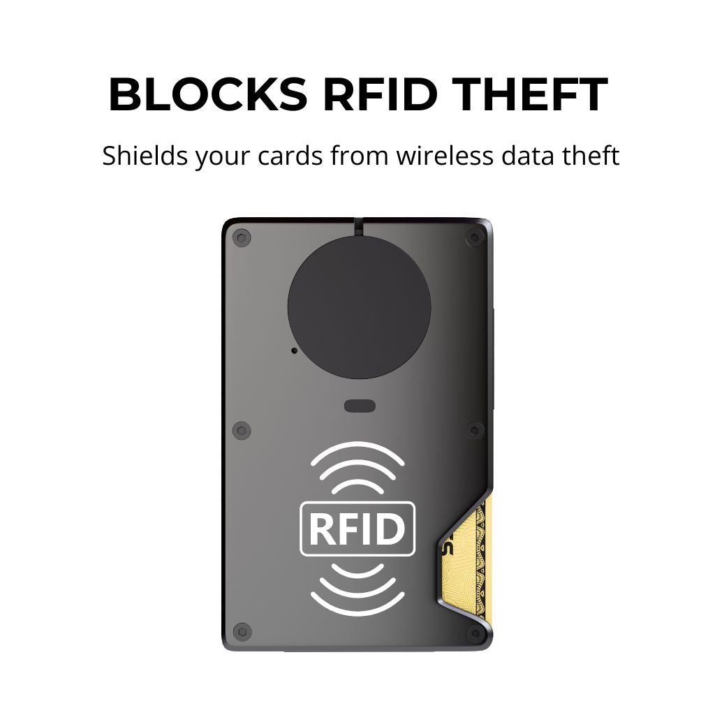 Absolutely — the aluminum frame blocks all RFID skimming signals, protecting your personal and payment data.