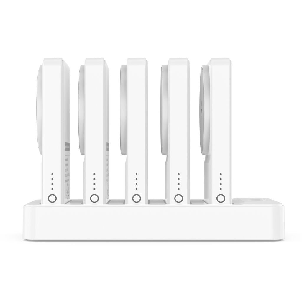 Each power bank holds 5000mAh capacity, with five included for a total of 25,000mAh across the system.