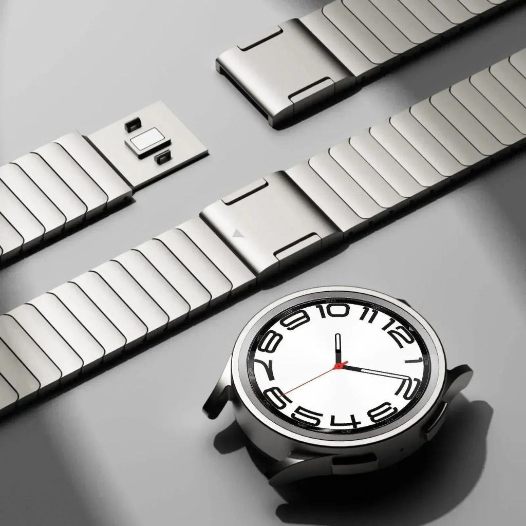 Upgrade your Samsung Galaxy Watch with the No-Gap Magnetic Stainless Steel Band, designed for a seamless fit and a sleek, modern look. Crafted from high-quality stainless steel, this band features a magnetic clasp for a secure, adjustable fit without the need for traditional buckles. The no-gap design ensures a perfect connection with your watch, giving it a clean and premium appearance.